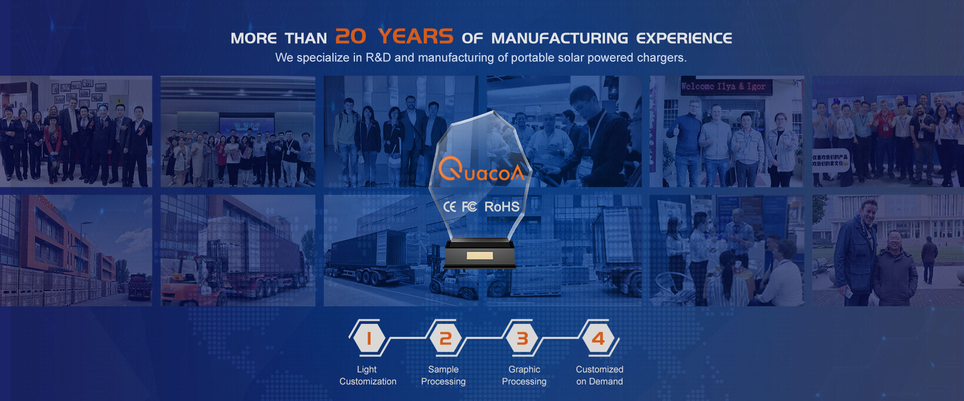 Shenzhen Quark Thinking Technology Co.,Ltd.is a professional manufacturer engaged in the R&D,production and sales of Solar Power Banks, Solar panels and related accessories. BSCI certificated factory with 20 years experience in Consumer electronics.